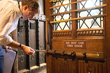 Issues were recorded with many of the historic features, including original Victorian stained-glass windows which are warping and sagging due to age. Surveyors also studied the enormous basement and the miles of outdated and interweaving gas, electrics, water, sewage, and heating pipes to get up to date records on the problems that need fixing.
